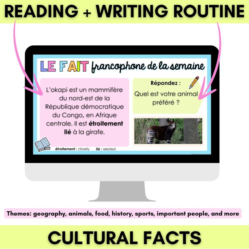 Francophone Fact of the Week is a weekly French routine that combines intercultural awareness, reading, and responding to questions in French.